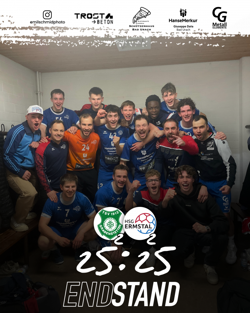 Die HSG Ermstal trennte sich am Samstagabend beim TSV Grabenstetten 1913 mit 25:25 (14:8). Nach einem über weite Strecken schwierigen Spielverlauf ist der Punktgewinn insgesamt positiv zu bewerten – auch wenn das Remis in den letzten Sekunden einen bitteren Beigeschmack hinterlässt.