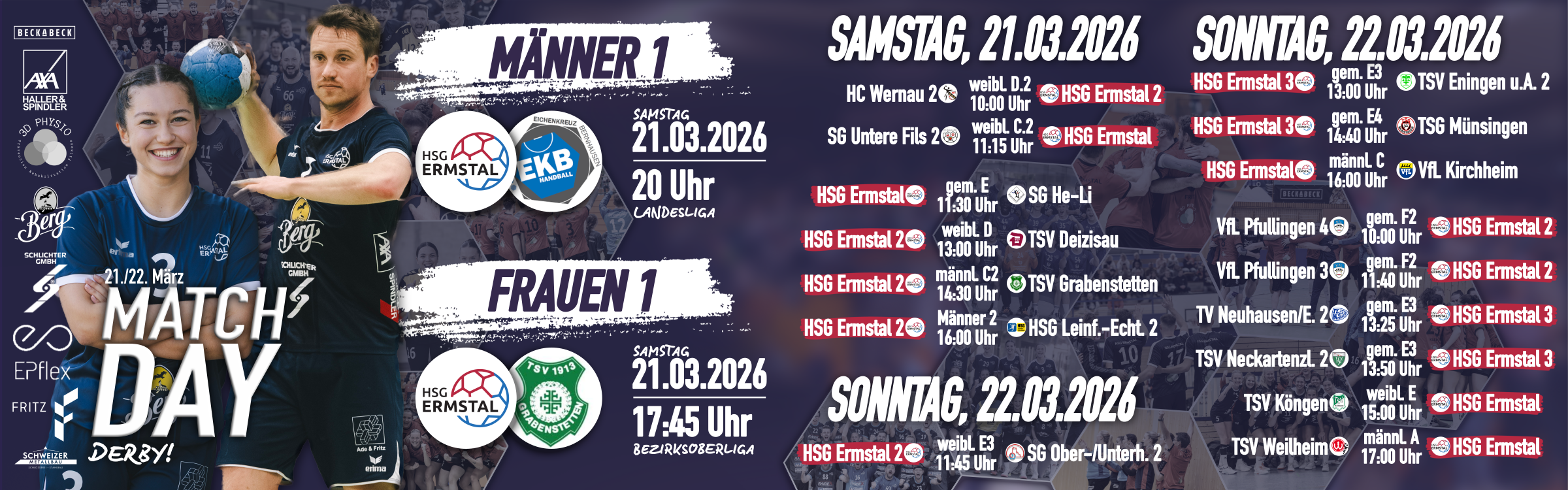 Am kommenden Samstag, den 21.03.2026, steht für die HSG Ermstal das nächste wichtige Spiel an. Um 20:00 Uhr empfängt man in der heimischen Neuwiesenhalle den EK Bernhausen zum nächsten Duell – ein Spiel mit großer Bedeutung im Kampf um die oberen Tabellenplätze.