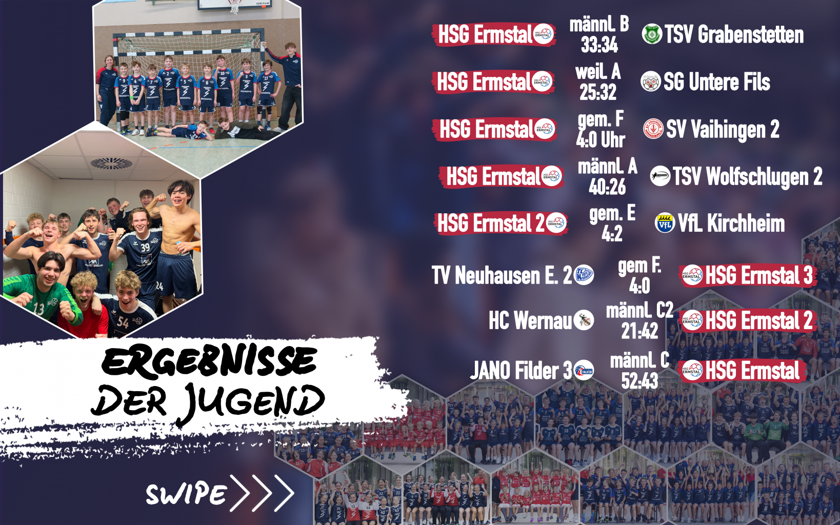 Ebenfalls unglücklich verlief das Heimspiel der mB gegen den TSV Grabenstetten 1913, das mit einer knappen 33:34-Niederlage endete. In einer über weite Strecken ausgeglichenen Partie wechselte die Führung mehrfach. Am Ende fehlte jedoch die letzte Konsequenz, sodass ein mögliches Unentschieden aus der Hand gegeben wurde.