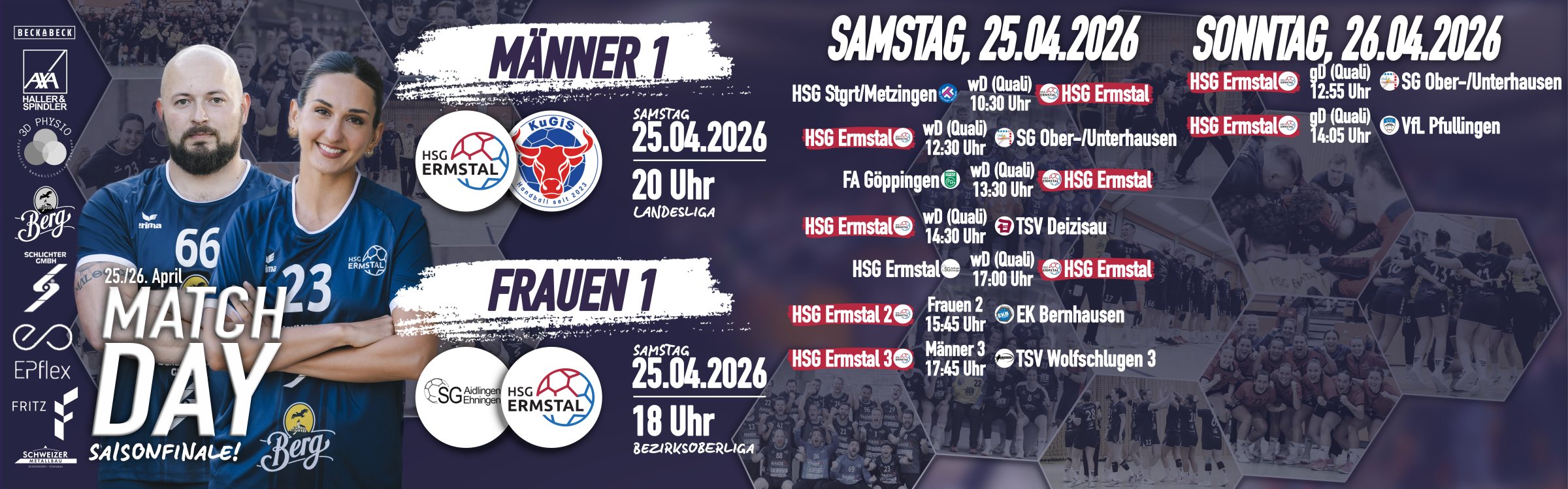 Am Samstag, den 25.04.2026 um 20:00 Uhr, bestreitet die HSG Ermstal ihr letztes Saisonspiel in der Neuwiesenhalle. Zum Abschluss der Spielzeit empfängt das Team die SG Kuchen-Gingen-Süßen – ein Duell, das trotz klarer Tabellenkonstellation noch einmal volle Konzentration erfordert.